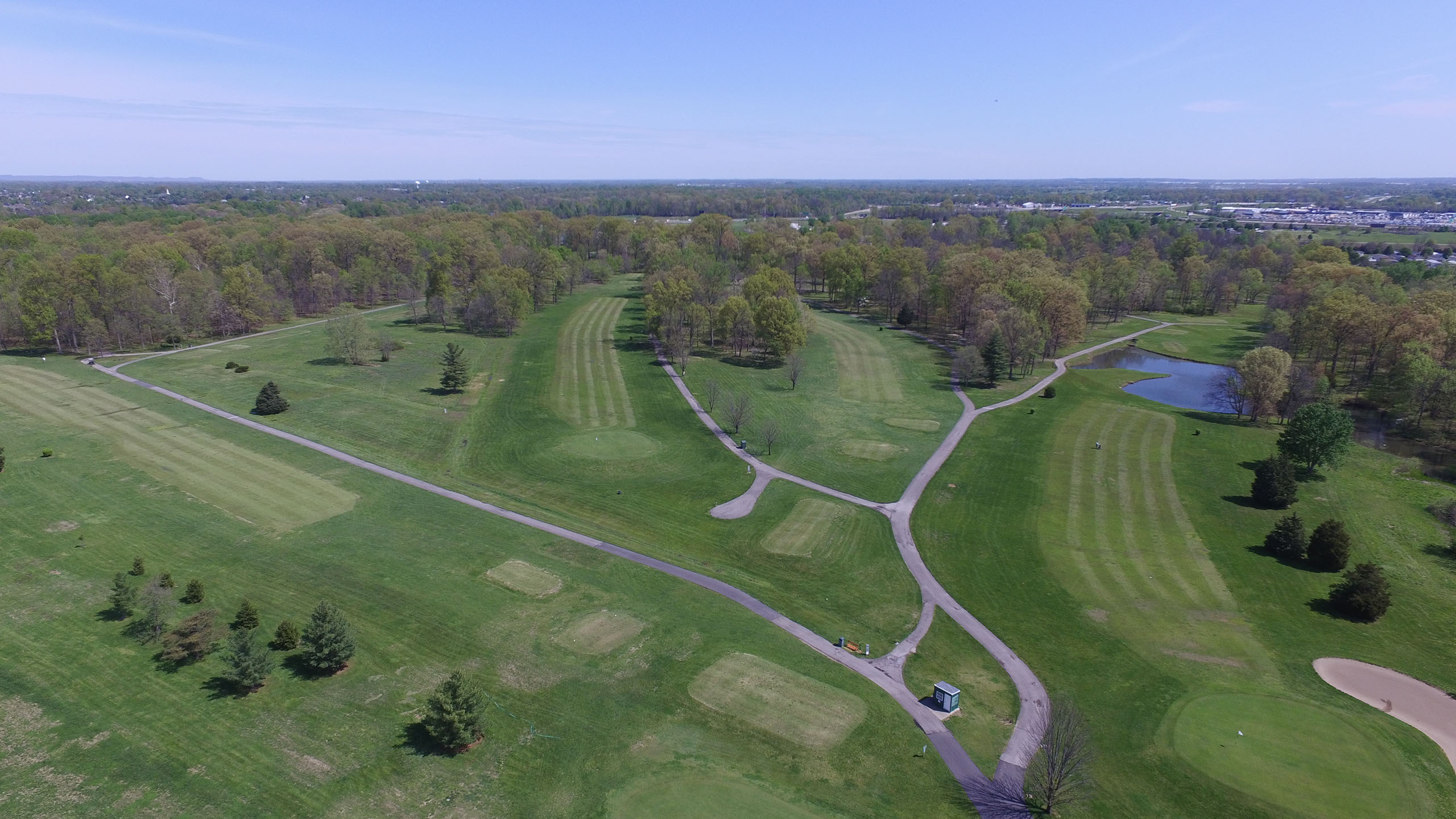 Wooded View Golf Course is an 18-hole course nestled in a beautiful wooded setting in Clarksville, Indiana. Rolling hills and plenty of trees make this course challenging and entertaining for golfers of all skill levels. Due to our wooded surroundings, don’t be surprised if you see wildlife such as deer, fox, and rabbits on the course. Our location is extremely convenient, located just one mile from Interstate 65 and five miles north of the Ohio River. As an added benefit, there are no homes in the area to restrict your play. When you are done or feeling like a break, our pro shop, lounge, and outdoor patio make the Clubhouse an excellent place to relax. Wooded View is open daily for your enjoyment, and we hope to see you soon!