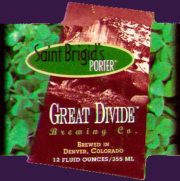 The label reads: Irish lore has it that St. Brigid performed tha mazing miricle of transforming her bathwater into beer. We feel that this deed is worthy of sainthood. Don't you? Gold Medal 1996 World Beer CupRobust Porter. Brian Dunn & Tara Leigh Dunn |