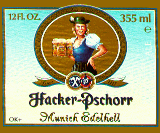 beer: In German "Edelhell"means noble bright. True to its name, Hacker-Pschorr Munich Edelhell has exceptional clarity, is brilliant gold in color with a noble and robust flavor. Taste Edelhell against your favorite blonde lager. You will quickly discover why Hacker-Pschorr Munich Edelhell was selected Best Beer in America by an Act of the United States Congress. |
