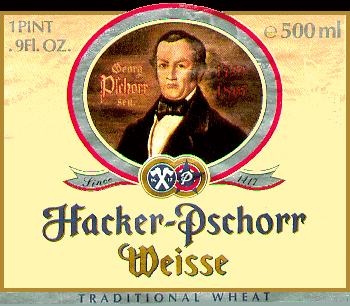 Gold Medal - 1995 World Beer Championship. The authentic Munich hefe-weizen (unfiltered wheat beer), Hacker-Pschorr Weisse is brewed with 60% wheat, 40% barley. Using top-fermenting yeast, it is then slowly lagered and remains unfiltered throughout the finish. High in effervescence, with its traditional wheat haze, Hacker-Pschorr Weisse is light and fruity, always refreshing.